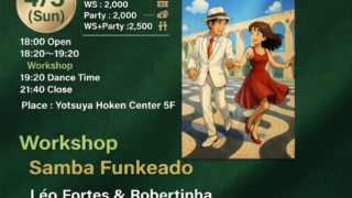Events初めてでも安心!ブラジリアン・ダンスナイト@四谷(4/5開催) ペアダンスは初めてで不安…? ひとり参加で大丈夫?そんなあなたにぴったりの、やさしく楽しい夜がここにあります!ブラジルのペアダンス(サンバ・ヂ・ガフィエイラ、フォホー、ボレロ、ソウチーニョなど)を、初心者向けレッスン+DJパーティーで気軽に... 2025.05.09Events未分類